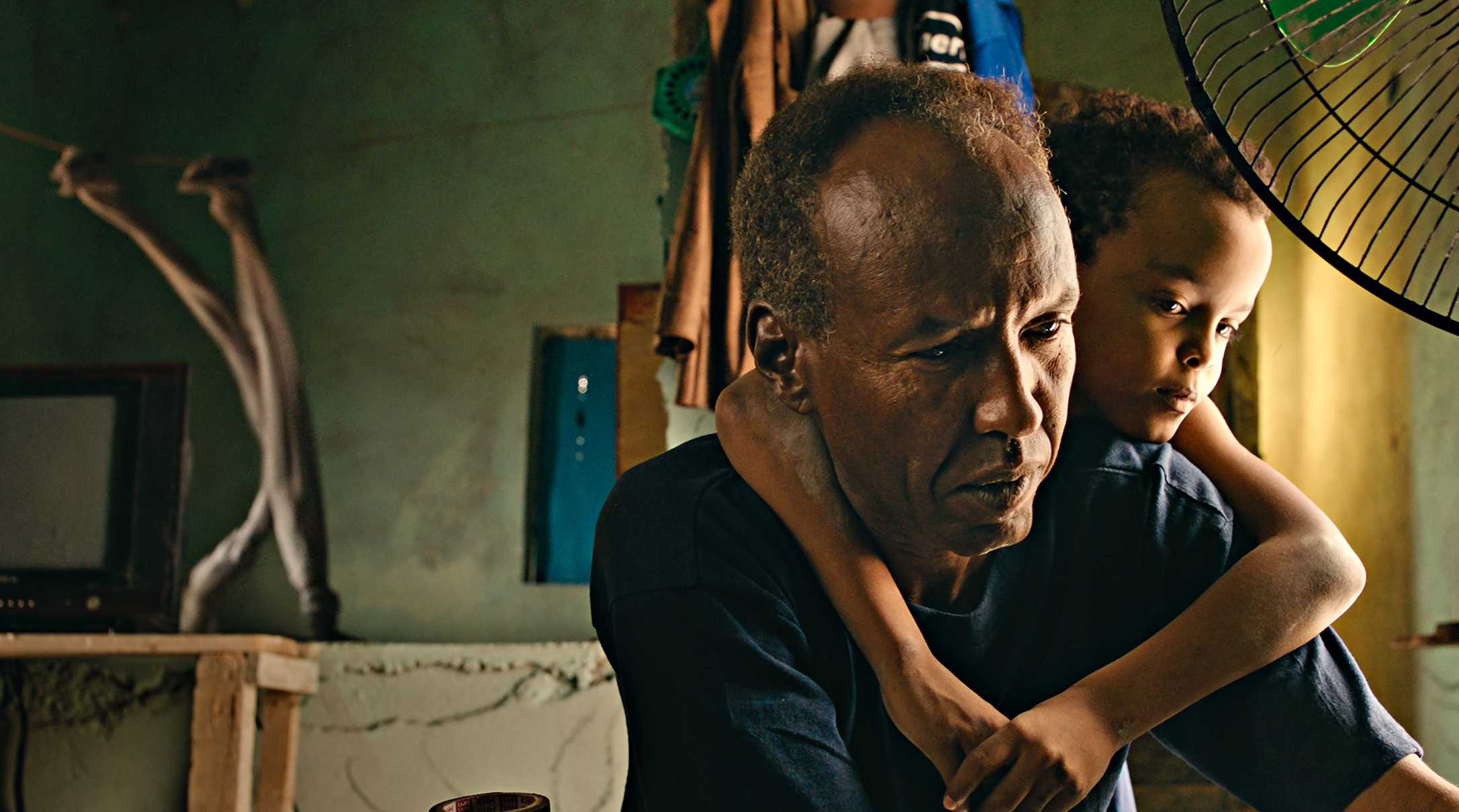 Mo Harawes Spielfilmdebüt und Eröffnungsfilm des diesjährigen Afrikamera-Festivals in Berlin, The Village next to Paradise, ist der erste somalische Film auf einem der großen A-Festivals, er lief in der Sektion “Un Certain Regard” in Cannes. Der Film verfolgt drei Figuren einer Familieneinheit in einem kleinen Dorf, den Jungen Cigaal (Ahmed Ali Farah), seinen Vater Mamargade (Ahmed Mohamoud Salleban) und dessen frisch geschiedene Schwester Araweelo (Anab Ahmed Ibrahim). Durch diese drei Figuren soll eine Kritik an den Umständen der somalischen Gesellschaft formuliert werden: Cigaals Schule muss schließen, weil es keine ausgebildeten Lehrkräfte gibt, Marmagade wechselt von einem Job zum nächsten, für sich selbst und seinen Sohn zu Sorgen wird täglich von neuem zu einer Herausforderung, und Araweelo muss als geschiedene Frau kämpfen, um ihren Traum von der eigenen Schneiderei zu verwirklichen. Über alledem hängt das verheißungsvolle Rauschen und Röhren amerikanischer Kampfdrohnen, die, wie uns die Eröffnungsszene berichtet, in der Lage sind, zu jedem Moment präzise Schläge auf Einzelpersonen durchzuführen. Der Papa bekommt dann von seinem Sohn im Grundschulalter beigebracht, was im Ernstfall zu tun ist: Auf den Bauch legen und mit den Händen den Kopf schützen. Harawe erzählt in sehr geduldigem Tempo von diesen Figuren und ihren Umständen, die den Alltag am Existenzminimum darstellen. Dabei verliert sich der Film jedoch nicht in persönlichen Leidensgeschichten, sondern weist bewusst auf soziale Probleme. Besonders bezeichnend ist die Szene, in der Araweelo einen Kredit für ihre Schneiderei verweigert wird, weil sie als alleinstehende Frau nicht befugt ist, nur Paare könnten einen Kredit erhalten. Der Film zeigt auf sehr eindringliche Weise, wie unweigerlich das Persönliche und das Politische verknüpft sind.